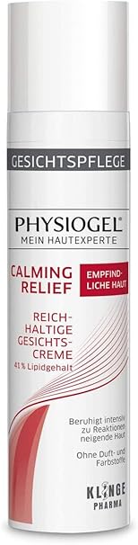 For irritated skin - The gentle facial care has been developed for sensitive, reddened and itchy skin and soothes, regenerates and repairs the skin with its active complex of PEA (palmitoylethanolamine) and skin-related lipids Gentle facial care - Daily rich, intensive care for irritated, allergic facial skin and skin reactions to environmental stimuli High tolerance - The formula of the face cream is free from fragrances and dyes and has been clinically tested by dermatologists PHYSIOGEL - Active principle - Thanks to the innovative PHYSIOGEL BioMimetic technology, the care product imitates the lamellar structure of the skin to repair and regenerate dry areas sustainably Package Contents - 1 x PHYSIOGEL Calming Relief Rich Face Cream 40ml, Nourishing Skin Care for Face, Relieves Skin Dryness and Light Redness Product Description PHYSIOGEL Calming Relief Rich Face Cream The Calming Relief Rich Face Cream is a nourishing care that visibly reduces skin dryness and redness and provides long-lasting moisture. Dry, tight skin is immediately relieved and the well-being of the skin is increased. Thanks to the advanced PHYSIOGEL BioMimetic technology and skin-related lipids, the skin lipid barrier is naturally regenerated and strengthened - for smooth, supple, less sensitive skin. For a pleasant skin feeling and a more even complexion. The rich face cream is also suitable as a make-up base. Lipid content: 41%. Hypoallergenic: no perfume and no dyes. Dermatologist Recommended Ingredients Aqua, Caprylic/Capric Triglycerides, Butyrospermum